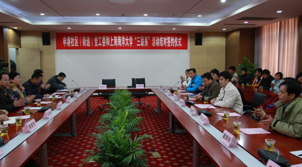 2009年1月9日中午,申港社区(街道)党工委结对资助我校困难大学生签约仪式在行政楼104会议室举行。校党委副书记、副校长黄晞建、申港社区(街道)党工委书记、办事处主任张校平等领导及部分公务员、学校职能部门领导、各学院学生工作负责人以及受助学生代表等参加了签约仪式。签约仪式由学生处处长李兴华主持。