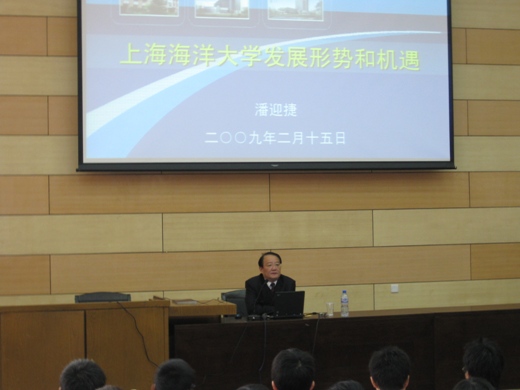 2月15日,春季开学第一天,潘迎捷校长为同学们作了“上海海洋大学发展形势和机遇”报告,全校近13000名学生通过网络转播共同聆听了报告。