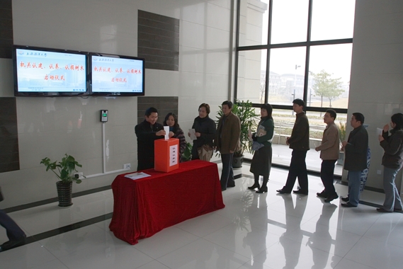 3月5日中午,机关党委认建、认养、认捐树木启动仪式在行政楼底楼大厅举行,全体在校领导参加了仪式,副校长封金章作动员讲话。仪式由机关党委书记张宗恩主持。