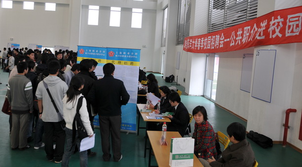 为进一步推动我校2009年毕业生就业工作,为目前尚未找到工作的毕业生提供更多的求职机会, 3月18日上午,我校又一轮校园招聘会“2009年上海海洋大学春季校园招聘会——公共职介进校园”在校体育馆举行。在上海市职业介绍中心的支持下,来自嘉定、金山、普陀、松江、长宁、闵行、浦东、卢湾、徐汇、闸北、宝山、杨浦、南汇、黄浦、静安、奉贤等16个区职业介绍所,21家用人单位参加,委托招聘的企业达250多家,招聘岗位1000多个。
