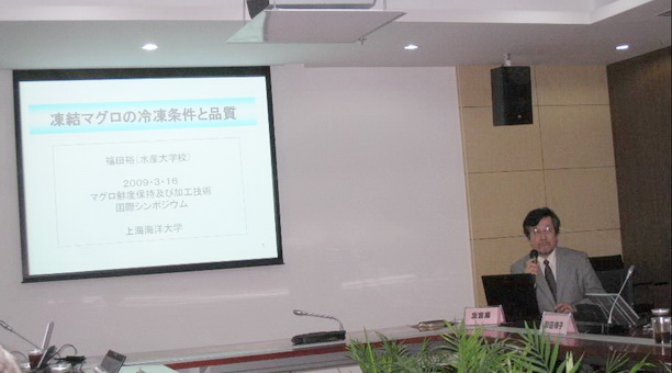 受我校农业部“948”项目“我国金枪鱼繁养及加工技术引进与产业化”项目组邀请,3月16日上午,日本水产大学校福田裕教授、和田律子助教,株式会社前川制作所半澤良一先生以及中国水产集团总公司副总工程师刘继生访问我校,并与我校就“金枪鱼鲜度保持及加工技术”这一专题展开了交流和探讨。食品学院王锡昌院长主持了本次活动,金枪鱼项目组成员和我校相关研究老师和研究生们参加了此次学术交流会。