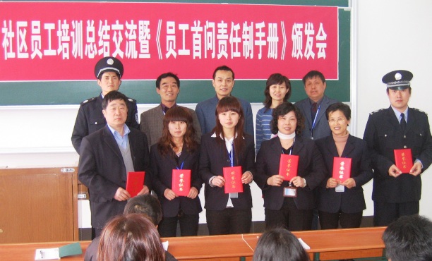 结合员工日常工作,本次培训共评出优秀学员30名。戴永金书记向获奖代表颁发了荣誉证书;并向员工代表颁发了《员工首问责任制手册》。来自社区不同岗位的三位代表做了交流发言。
