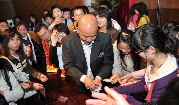 一双双急迫伸出的手可见袁岳先生讲座的受欢迎程度。