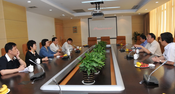 潘校长向市台办副主任赵雅君(左三)等领导介绍学校情况。