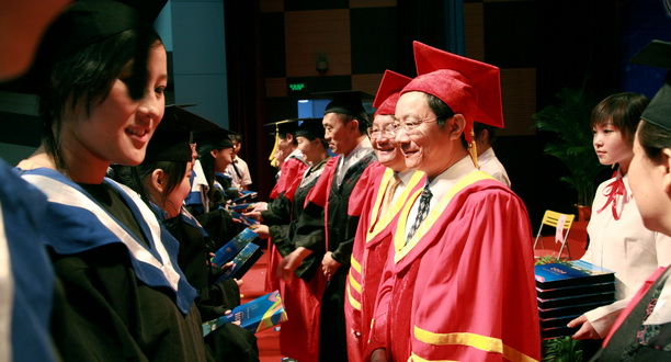 校长潘迎捷教授向圆满完成学业并获得学士学位的同学们表示热烈祝贺,向为他们成长成才付出大量心血和劳动的全校教职员工表示诚挚敬意,向支持他们奋发成才、长期关注上海海洋大学发展建设的各位家长和亲属们表示亲切问候和衷心感谢;再次,潘校长用他为经济管理学院2009届毕业生纪念册上题写的寄语:“志存高远、牢记校训、心系母校、报效祖国”向毕业生们提出了希望;最后,潘校长希望毕业生们无论走到哪里,无论从事什么职业,希望大家一如既往地关注母校的建设和发展,为母校腾飞做出贡献。同时,学校也会永远像母亲一样支持你们、帮助你们、欢迎你们,希望大家“常回家看看”,他还与毕业生们相约海大百年华诞时再相见!