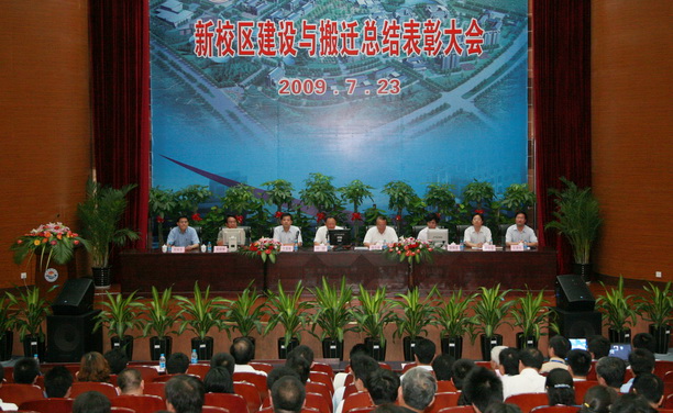 潘迎捷校长作了重要讲话。首先,潘校长对奋战在新校区建设与搬迁第一线的全体教职工和学生表示衷心的感谢。潘校长指出,新校区不仅为师生提供了美丽的现代化的校园环境,舒适的工作条件,积累了有形的、宝贵的物质财富,同时在新校区建设中,在师生中出现了很多感人的先进事迹,为学校积淀了无形的、宝贵的精神财富。潘校长指出,在新校区建设中,全校上下形成了攻坚克难、勇往直前的精神,形成了勇挑重担、无私奉献的精神,形成了遵守诺言、顾全大局的精神,这三种精神是学校百年优秀传统的传承,是“勤朴忠实”校训精神的继承和弘扬,也将是学校今后发展的不竭动力与源泉。学校将通过校史馆、校报、校园网、和新学期教育等形式,把新校区建设与搬迁形成的三种精神进一步宣传和弘扬,让广大师生了解新校区建设与搬迁坚苦历程,增强爱校荣校的责任心和使命感。潘校长指出,新校区一、二期工程建设满足了学校教学科研的基本要求,但距离高水平特色大学的学科需求还有差距,同时地处远郊也给办学带来了一定困难,对师生造成了一定的不便,学校将不断调整和完善办学硬件,同时要进一步转变办学观念。潘校长希望广大教师和学生珍惜新校区建设带来的机遇,弘扬新校区建设精神,不断推进学校的内涵建设,实现学校新的历史转变,在滴水湖畔和东海之滨谱写学校发展新篇章,再创新业绩,再续新辉煌。叶骏书记在讲话中指出,新校区的建成,掀开了我校百年发展史上重要的一页,标志着前进和发展中的海大在硬件建设上实现了质的跨越,学校站在了新的发展起点。在暑期开展修缮工作,是校领导班子在学习实践科学发展观活动中对师生作出的承诺,叶书记要求相关部门一定要集中精力把暑期修缮工作做好,为师生提供更加舒适的学习、生活和工作环境。叶书记指出,学校大规模建设告一段落,要更加突出内涵建设,广大师生要学习新校区建设精神,进一步继承和弘扬海大精神,把各项工作做好,推进学校进一步发展。