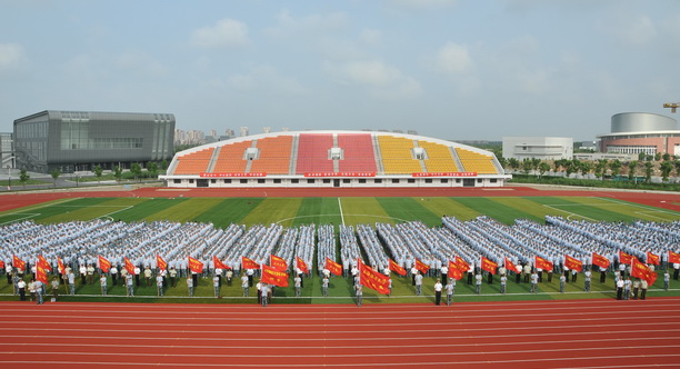8月29日上午,我校2008级学生军训开训仪式在校体育场隆重举行。海军某部副大队长徐长友、校长潘迎捷、校党委副书记、副校长黄晞建、副校长程裕东、校长助理吴建农及相关部门负责人出席了开训仪式,开训仪式由封金章副校长主持。