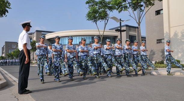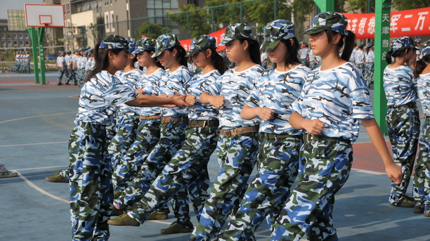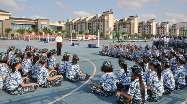 早上,同学们迅速出操,整齐划一地列队在军训场上,安静、专注地观看教官的队列表演,看到他们整齐的队列、步伐、转体,听到教官气势如虹的口令,同学们掌声雷鸣。从同学们的掌声和眼神中能看到他们找到了榜样,看到了军训的目标和方向。烈日之下,没有孬兵,更没有逃兵。纵然汗水流淌,在孩子稚气的脸上写的是坚韧和刚强;纵然休息间隙,行走的步履有些蹒跚,但步伐依然让人感受到迈出的是坚定;纵然脸色有些苍白,但他们年轻的身板依然笔挺,眉宇之间,我们看到的是他们对意志的执着。他们在行动中兑现典礼上的承诺:无论多苦、多累,无论是风吹还是雨打,绝不退却!困苦之下的坚持才能铸就真正的钢铁品质!他们也正用实际行动书写军训的意义:磨练意志,培百折不挠的精神和宽广博爱的胸怀,培养吃苦耐劳的优良品德以及艰苦奋斗的作风,做一个文武双全,报效祖国的成功青年!
