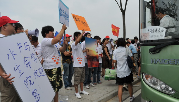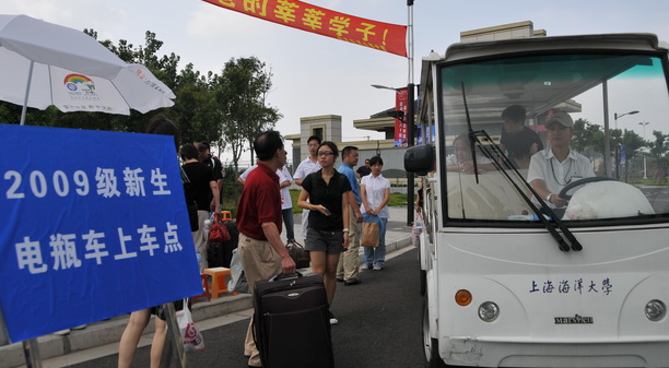 9月8日是我校2009级新生正式报到日,火红的气球、鲜艳的旗帜、催人上进的横幅、令人倍感亲切的的志愿者服装……我校临港新城校区呈现出一片喜庆和热烈的迎新气氛。
