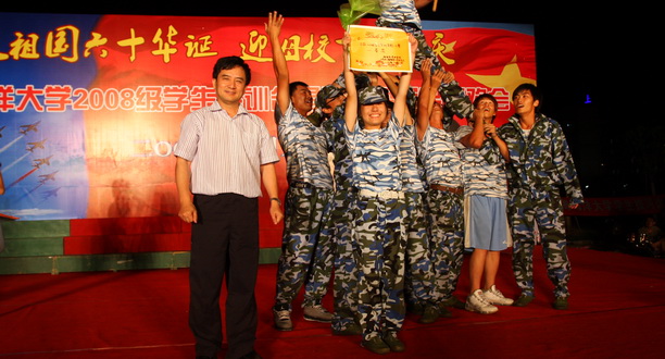 9月9日晚,由军训团、校团委、校大学生艺术团联合举办的“庆祖国六十华诞,迎母校百年校庆——上海海洋大学2008届学生军训合唱比赛暨军民联欢会”在我校体育场拉开帷幕。精彩的表演不仅震撼了所有军训学员也吸引了广大进入海大大家庭的大一新生们,整个广场笼罩在一片欢声笑语之中。军训团团部所有领导及各学院党委副书记出席了晚会。