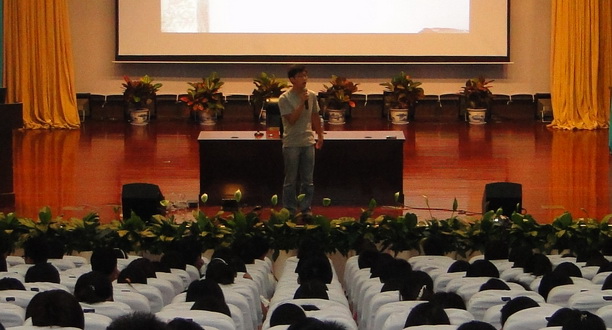 9月11日,在校大学生活动中心报告厅,上海交大昂立文化发展研究院副院长、人生奋进导师--李易真应爱恩学院邀请来我校为爱恩学院09级新生做《人之道---改变你一生》励志感恩报告。