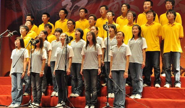 9月24日晚,大学生活动中心报告厅内红旗飘扬,歌声嘹亮,上海海洋大学庆祝新中国成立60周年红歌会“唱青春激情,奏祖国乐章”举行。各学院学子齐聚一起,深情唱响一首首经典歌曲,用优美的歌声表达对祖国母亲的无限热爱之情,抒发报效祖国的雄心壮志。学生处副处长罗汝坤,校团委书记夏雅敏以及各学院党委副书记和辅导员出席歌会。