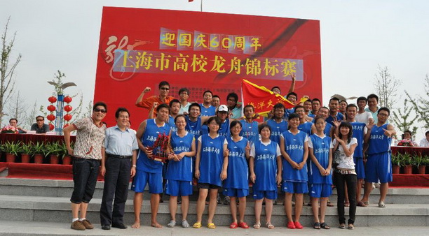 “迎国庆60周年上海市高校龙舟锦标赛”于9月26日在华东理工大学奉贤校区举行,本次比赛由上海高校的十支队伍参加,其中不乏复旦,同济等名校。本次比赛受到了各方面的重视和关心,赛前校领导和相关部门领导多次前来关心校划船队的训练情况。体育部领导和相关负责教师为此次比赛付出了很多的心血,参加集训的各位同学积极参加训练,洒下了勤奋的汗水。能取得如此的成绩是对他们努力的最好回报。值得一提的是,参加此次比赛的22位队员中,有6名女队员,她们参加了过去一年多的训练,不怕苦累,精神可嘉。 在整个比赛过程中,我校龙舟队赛出了风格,赛出了水平,不仅在赛场上给其他各队留下了深刻的印象,在场下也时刻发扬互帮互助的友爱精神,受到兄弟队伍的好评与尊重。