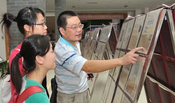 为庆祝中华人民共和国成立六十周年,增强青年大学生朋友的爱国主义热情,由党委宣传部、校集邮协会主办的“红色丰碑”集邮展9月28日在图文中心开展。