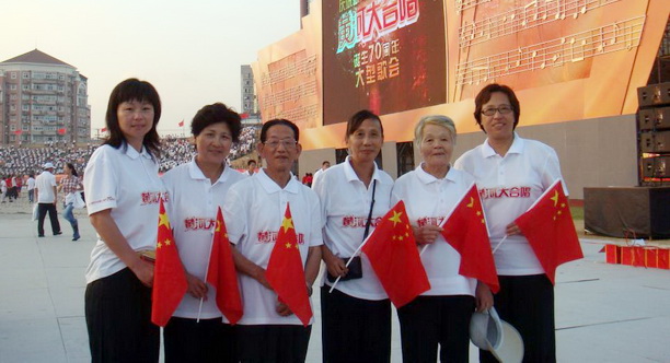2009年9月19日,我校离退休老同志参加了在上海江湾体育场举行的、万人大合唱《黄河》的现场演出。这次由22000人组成的《黄河》大合唱的场面可谓波澜壮阔、旋律激昂,让参加者激动万分。