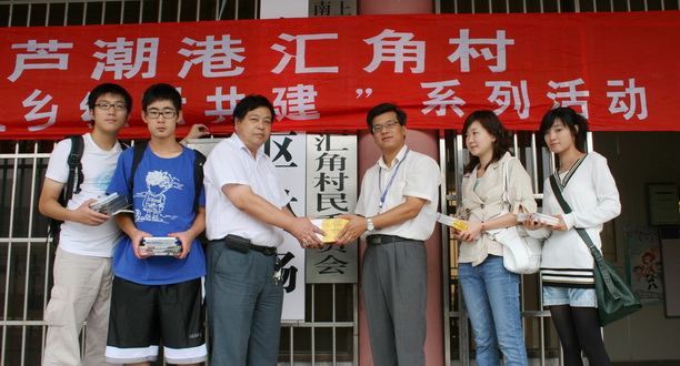 为迎接伟大祖国60华诞、继续推进科学发展观的学习实践,9月29日上午,我校工程学院部分师生前往芦潮港镇汇角村,深入开展文化下乡活动。