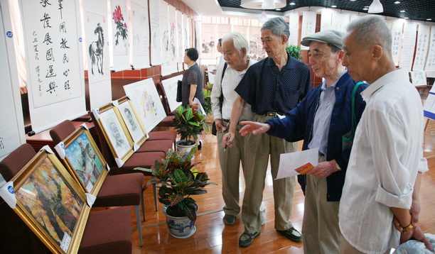 各类书法、绘画作品吸引了老同志的极大兴趣