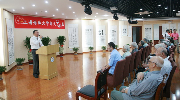 9月29日上午, 上海海洋大学庆祝建国60周年书画艺术作品展在临港校区教工之家隆重开幕。开幕式由校党委组织部部长汪之和主持,我校老教师和学生代表分别交流了创作感受。校党委书记叶骏发表了热情洋溢的讲话,并在大家热烈的掌声中宣布上海海洋大学书画艺术作品展开幕。