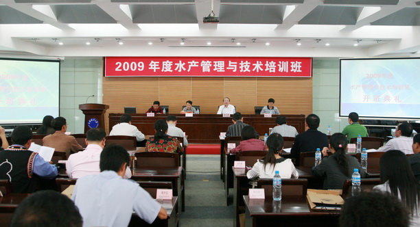 根据沪合组办[2009]4号文“关于认真做好2009年度上海为对口支援地区西部地区实施人力资源培训工作的通知”安排,10月11日上午, “2009年度水产管理及技术培训班”在我校军工路校区开班,来自宜昌夷陵区、云南文山州、红河州、普洱市等地区的50名水产管理系统基层干部和技术人员参加此次培训,上海市合作交流办韩沪幸副处长、上海海洋大学校长潘迎捷教授出席了开班典礼,并为学员上第一课。开班典礼由成人教育学院成长生院长主持。