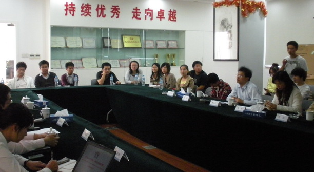 陈宁涛书记对大家的到来表示热烈的欢迎,她指出,一个团结向上、乐于奉献、积极进取的团队对于一个在激烈的市场竞争中求生存、求进步、求发展的企业来说至关重要,移动公司正是以党建为抓手,通过营造一个温馨、民主、和谐的氛围,对凝聚人心起到推动促进作用。同时陈书记希望在座的学生党员们无论何时何地都要坚持脚踏实地,从身边、从点滴做起,发扬团队和奉献精神,细节决定成败,机会对每个人来说都是均等的,要通过各种平台锻炼完善自我,善于把握住机会。丁秀珍副书记和南汇移动临港区域经理丁晓春就南汇移动基本情况及党建工作进行了介绍;同学们就党员发展、企业如何挑选大学生等方面与领导做了互动交流。