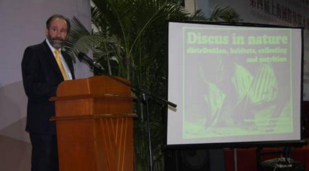 来自荷兰、德国、澳大利亚、新加坡和广东、上海等国内外水族界约20位专家参加了本次会议。国际观赏鱼协会秘书长Alex Ploeg博士、德国专家Heiko Bleher先生、澳大利亚专家Josiah Pit博士、上海浦江出入境检验检疫局徐俊先生、广东观赏鱼研究会章之蓉教授、广东省七彩神仙会会长黄运南先生、我校水产与生命学院冷向军教授、潘连德教授、陈再忠副教授、高建忠副教授等专家分别就世界观赏渔业的发展动向、澳大利亚观赏鱼产业、我国观赏鱼产业、观赏鱼进出境检疫、营养与饲料、疾病防治、活体运输、水生态调控以及七彩神仙鱼自然生长环境与进出口标准等专题作了精彩发言。