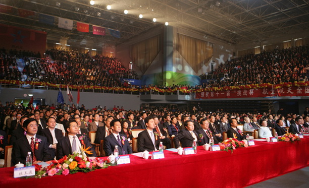 由共青团中央、中国科协、教育部、工业和信息化部、全国学联和北京市人民政府共同举办的第十一届“挑战杯”(航空航天)全国大学生课外学术科技作品竞赛决赛开幕式于10月28日下午3时在北京航空航天大学体育馆举行,来自内地、港澳台及国外的近500所高校师生代表,社会各界代表4000多人参加了开幕式。