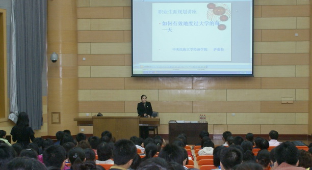10月28日晚上,中央民族大学萨茹拉教授再次应邀来校,携弟子刘颖颖为食品学院大一全体新生作了一场精彩的“拓荒训练”讲座。