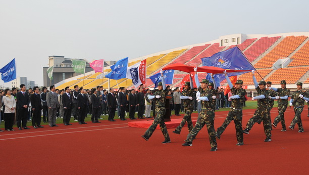 潘迎捷校长在升旗仪式上发表讲话。他说,回首学校走过的97年,我们感到无比的自豪和光荣。从1912年黄炎培、张謇等仁人志士创建江苏省立水产专科学校,一代代的海大人在“勤朴忠实”的校训精神激励下历经5次搬迁、11次更名,学校风雨兼程、磨砺奋进,为祖国的经济和社会发展,特别是为中国的渔业发展作出了重要贡献。