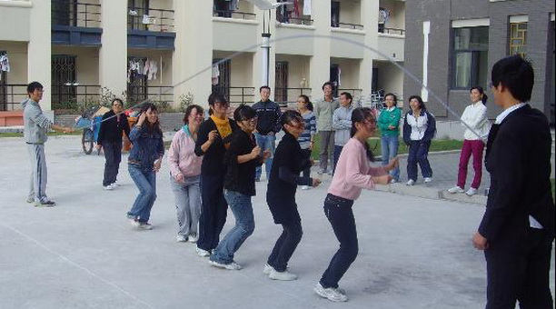 接下来的踢毽子比赛既考验大家踢毽子的技术,更重要的是考验大家的挑战自我的精神,李晓明获得最高分摘得桂冠,令在场所有女生惊叹。