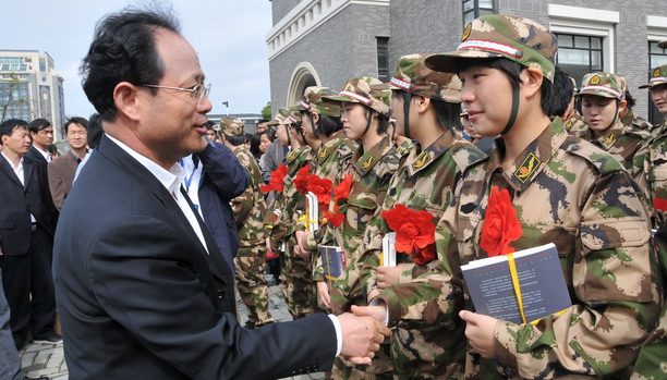 潘迎捷校长希望入伍新兵高标准严要求,为世博安保作贡献