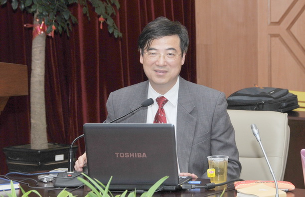 应外国语学院邀请,2009年11月10日下午,中国英语教学研究会副会长、国家级英语教学团队负责人、教育部教材审定委员会和外语专业教学评估委员会委员、上海外国语大学英语学院院长、博士生导师、梅德明教授以“英语学科建设与教师发展”为题,在我校图文信息中心102会议室为外国语学院全体英语教师和部分英语专业学生作了一场长达两个小时的精彩学术报告。本次报告会由外国语学院周永模副院长主持。