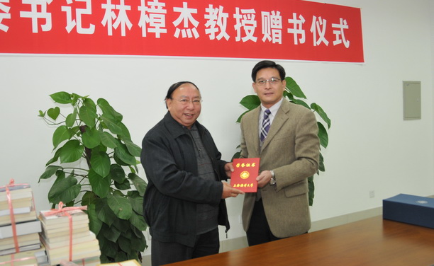 程裕东副校长向林樟杰教授颁发捐赠赠书