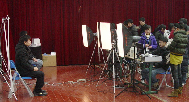 按照有关规定,身份证照片必须由本人自行到派出所拍摄,而临港派出所新成立还不具备拍摄身份证照片的能力,学生需要到惠南镇去拍摄,路途遥远,交通也不方便。为了方便学生,让外地落户学生能尽早拿到上海身份证,校保卫处多次与浦东新区公安分局户政科、临港新城派出所协调,公安部门派出专人为我校2009级外地学生集中拍摄了身份证照片。