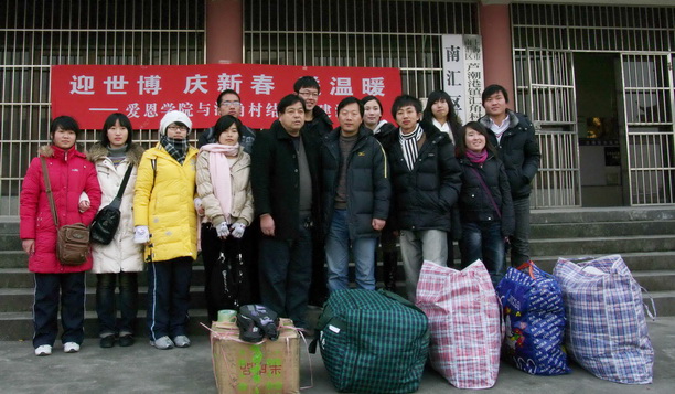 在世博会倒计时100天来临之际,爱恩学院于1月15日下午与芦潮港镇汇角村开展了 “迎世博、庆新春、送温暖”结对共建活动。