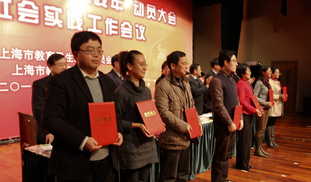 会议全面部署了今年的“世博实践年”活动,动员全市青少年学生更好地“参与世博、服务世博、奉献世博”,为举办一届成功、精彩、难忘的世博会贡献力量。莫负春副书记在主报告中指出,本市教育系统将在“世博实践年”中重点实施“一个计划,五大系列”。一个计划,即:世博志愿者激励计划:全力支持全市高校世博志愿者工作站点和大学生志愿服务活动,对各高校、各区县教育局服务世博过程中涌现的优秀志愿者、优秀组织者、优秀集体和优秀项目进行评比、表彰和奖励。五大系列包括:1、世博志愿精神引领系列,通过整理出版世博志愿者事迹书籍、组织世博志愿者报告团巡讲、制作反映世博志愿者的纪录片、开设一批世博志愿者博客群等活动,打造具有海派特点的“海宝一代”,弘扬世博志愿精神。2、世博文化展示系列,通过实施校园文化“联展项目”、民族文化“走进项目”、世博文化“在线项目”,传承和弘扬中华民族、民俗、民风,推进世博文化的交流展示。3、世博文明践行系列,通过开展“文明观博”和系列培训实践活动,加强中小学生法制宣传,倡导广大师生践行公共道德、规范公共行为。4、世博创意行动系列,通过开展“世博家园、你我同行”系列主题活动、“世博DV”征集评选等活动,激发学生的智慧,点燃学生创造的火花,充分调动学生的想象力、创造力和实践能力。5、世博风采宣传系列,发动更多师生“了解世博、参与世博”,推出教育系统在世博服务中涌现的优秀人物和集体。会上还表彰了2009年教育系统开展的由上海海洋大学承办的“百个大学生志愿者服务团进社区活动”及由上海中医药大学承办的“迎世博百个主题创意活动”优秀项目征集评选活动的获奖者。我校的迎世博食品安全与检测服务团、“创世博新风,除电子垃圾”服务团、“迎世博环保宣传”服务团、文化进社区服务团、“绿野之萍”服务团等5个项目荣获2009年“你我参与,精彩世博——上海市百个大学生志愿者服务团进社区活动”优秀项目,“2009迎世博食品药品安全进社区”、“ 请用我的眼睛看世界——‘我是你的眼’助残项目组”两个项目荣获2009年“你我创意,精彩世博——上海市教育系统百个创意主题活动”优秀项目。