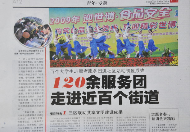 青年报整版报道了我校承办的百个社团进社区活动