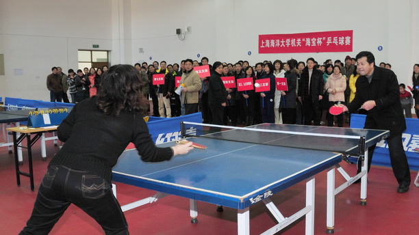 为进一步丰富机关干部职工的文体生活,增强体质,营造“工作并快乐”的全民健身氛围,提高凝聚力、向心力,促进和谐机关建设,展示机关的精神风貌,共同建设我们美好的家园。1月26日上午,以“我运动、我健康、我快乐”为主题的机关“海宝”杯乒乓球赛在校体育馆开赛。校党委书记叶骏到场观战并为赛季冠军颁发证书,校党委副书记吴嘉敏为比赛开球。