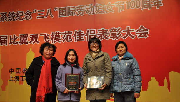 在教育系统表彰会上,王丽卿、戴小杰夫妇作为市教育系统第七届模范佳侣上台领奖,同时受到表彰的还有获得上海市巾帼文明岗和教育系统文明示范岗的获得者食品学院海洋功能性食品与药物研究所。