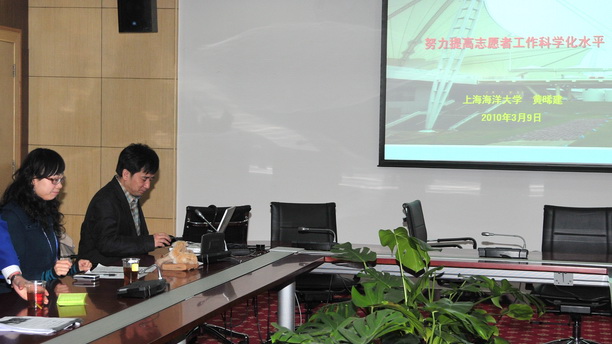 校党委副书记、副校长黄晞建做了题为“努力提高志愿者工作科学化水平”的专题发言。他强调,海洋大学师生要在中央和市委的要求下,为世博奉献强大的精神力量、服务保证、舆论支持和文化环境保障;要组成优秀志愿者的队伍,呈现海大精神;充分利用世博会蕴含的丰富教育资源,把握世博会丰富内涵,着力打造“海宝一代”;全校各个系统都要主动树立服务意识,注意把握网络等媒体新特征,着力提高教育舆论的引导能力。并提出海大“海宝一代”应具备奉献担当、开放包容、乐观向上、热情可爱、时尚现代、文明谦和等六种精神。