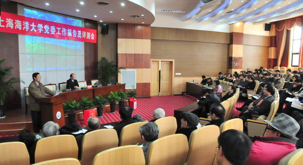 校长潘迎捷代表学校党委向党代表作了题为《发扬民主,凝聚人心,集思广益,以党内民主建设为抓手推动学校科学发展》的报告,从六个方面向党代表报告了我校2009年党委的主要工作:一是学习实践科学发展观活动开展和整改落实情况,特别是近期整改落实情况,主要包括加强思想、能力和作风建设,提升校院领导班子治校理校能力;突出重点,突破难点,开拓创新,推进内涵建设上水平;推进制度建设,提升科学管理水平;加强思想政治教育和精神文明教育,提高德育工作水平。二是基层党组织自身建设情况,包括基层组织设置、党员发展、领导班子建设等。三是党内基层民主开展情况,主要包括校、院两级领导班子民主生活会,组织党员参加民主评议,积极推进党务公开,中层干部换届中的民主做法和民主形式等。四是党组织和党员发挥作用情况,主要体现在深化与芦潮港镇汇角村的结对帮扶工作,关心教职工生活,帮助学生就业等。五是基层党组织和党员联系群众情况,包括深入推进党代表三级联系制度,继续实行校领导班子成员联系点制度和下基层制度,继续推进校党委领导与师生网上交流制度等。六是党费和党组织工作经费管理使用情况,主要包括党费管理、收缴和使用,党组织工作经费管理等。此后,潘校长还简要介绍了我校党委2010年的工作计划。报告结束后,各位党代表对我校党委2009年的工作进行了评议。