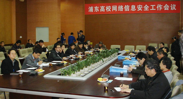 封金章副校长代表学校对专家组成员和浦东高校网络信息负责人的到来表示欢迎,希望充分利用会议平台,加强校际交流和沟通,促进资源共享,共同进步,不断提高网络信息安全的工作水平和质量。市教委信息中心主任陈海强主持会议并指出,在世博会即将召开之际,为落实关于加强本市教育系统网络与信息安全工作的通知要求,市教委成立了上海高校网络信息安全专家组,开展各高校自检、专家检查、整改的安全活动,确保世博期间的网络信息安全。上海高校网络信息安全专家组组长、上海交通大学汪为农教授以《提高网络安全意识,加强安全防范》为题,回顾总结了上海高校网络信息安全工作现状,介绍了近期发生的网络信息安全事件,提出了加强安全防范的措施建议。浦东高校网络信息安全工作牵头人、我校现教中心主任吴开军部署了浦东高校网络信息安全工作,并重点介绍了我校网络信息化情况。