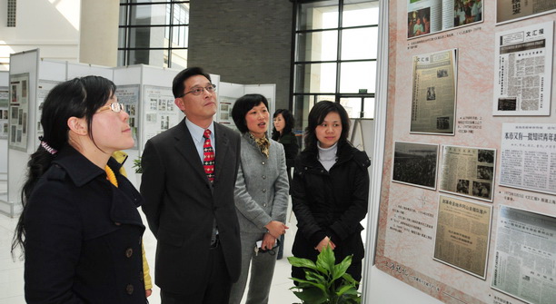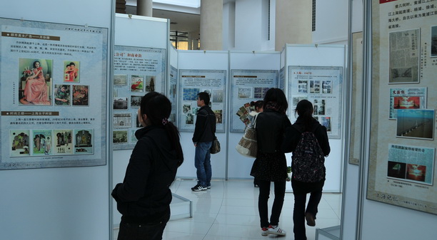 在上师大图书馆的大力支持下,今天我们首先拉开了图书馆展览的序幕。这次展出的是从报刊文献资料中广泛选取的有关上海百年变迁的珍贵资料。展览分为“20世纪初到40年代末的上海”、“20世纪50-60年代的上海”、“‘文革’时期的上海”、“改革开放的上海”等四个部分,集中展现了上海在各个历史时期的社会、文化、生活等面貌。参观展览的同学纷纷表示,展览史料翔实,大大开阔了大家眼界,通过这些文字和图片资料,不仅能更多地了解上海的过去,也能深深体会上海今天的发展成就来之不易。