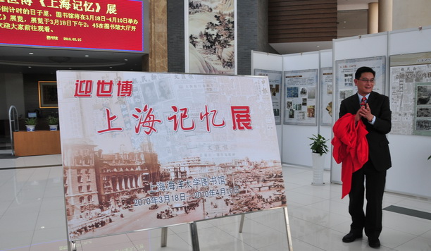 在全民行动、迎接世博倒计时的日子里,由图书馆主办的《上海记忆》图片资料展在今天下午如期开幕了。出席开幕式的有程裕东副校长、校宣传部江卫平部长、以及部分师生代表。仪式由图书馆直属支部书记郭亚贞主持。