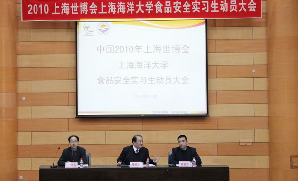 3月17日下午,世博会上海海洋大学食品安全实习生动员暨培训大会在1117室隆重举行。潘迎捷校长、上海食品药品监督所顾振华所长及食品学院院领导、6名带队教师出席会议,会议由王锡昌院长主持。