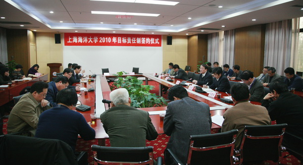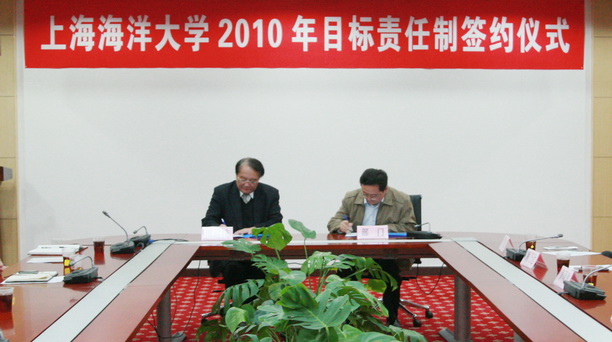 4月1日上午,我校在行政楼104室举行2010年目标责任制签约大会,在校校领导、全体中层干部正职出席了会议。签约仪式由副校长封金章主持。会上,党委组织部部长汪之和介绍了本年度目标责任制的制定原则,并对目标任务书调整情况作了说明。校长潘迎捷代表学校与各学院负责人、机关直属部门代表签定了目标责任书。学院和部门代表食品学院院长王锡昌、社科部主任董玉来、招生就业办主任张宗恩、现代信息中心主任吴开军作了发言。