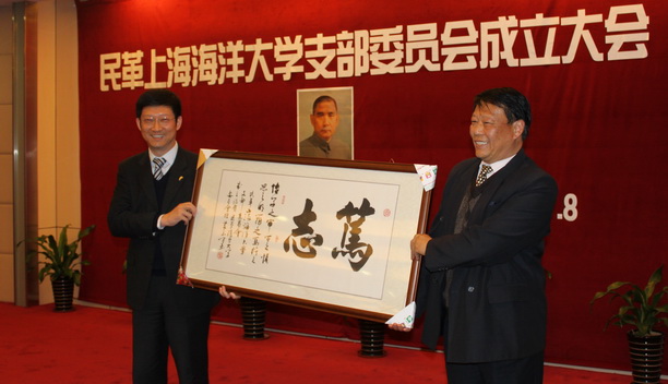 民革市委秘书长李栋樑代表民革市委,庄重地将民革上海海洋大学支部印章授于支部主委陈蓝荪同志,表示民革上海海洋大学支部组织的运作正式开始。