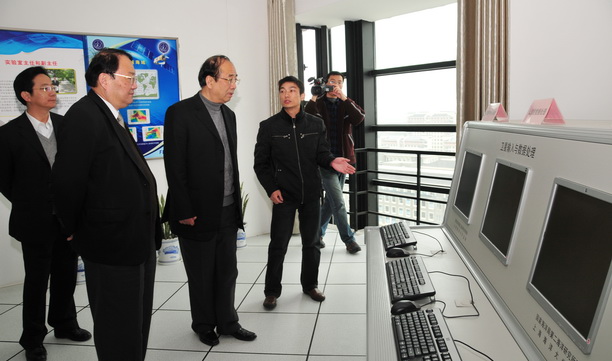 在校期间,赵启正同志在校领导陪同下饶有兴趣地参观了学校教学楼、海洋遥感实验室等,并在图文中心十二楼观光厅俯瞰了校园风貌,清雅俊秀的新校区建筑风格给赵启正同志留下了深刻印象。