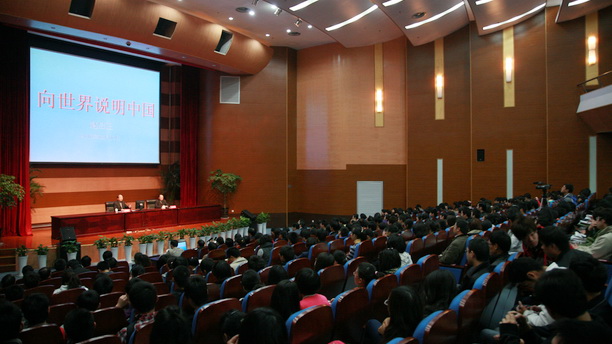 报告会上,赵启正同志通过大量丰富鲜活的实践事例,站在当代中国和世界发展的前沿,从国际舆论对国家发展的重要性、西方媒体对中国的舆论态度、向世界说明中国等三方面,以广博的视野和丰富的实践经验深刻分析了当前中国面临的国际舆论形势,阐述了”向世界说明中国”的策略,并就师生们关心的问题作了精彩地解答。