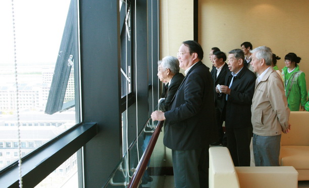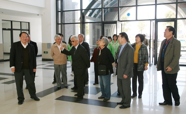 在参观教学楼时,农业部老领导连声夸赞校园建设