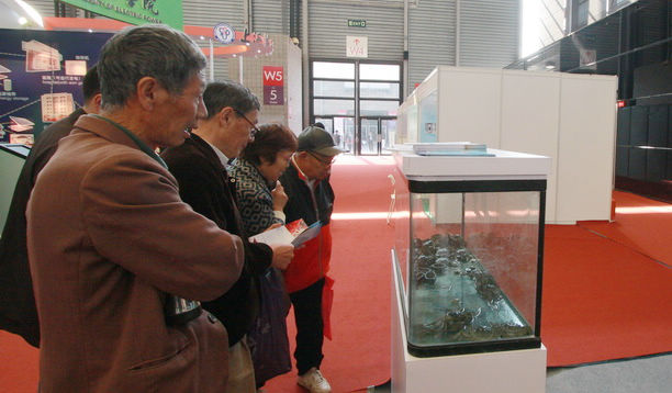 观众饶有兴趣地参观我校展出的“大闸蟹”